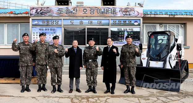 During the ceremony held at the Mount Baekdu unit base, Doosan Group Chairman Jeongwon Park said: “We hope that our equipment could help lessen the soldiers’ burden of snow removal after heavy snowfalls in wintertime.”