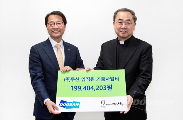 On April 6, Doosan Corporation delivered nearly 200 million won (about $187,000) raised by its employees to the Babo Nanum Foundation at the Archdiocese of Seoul, Myeongdong, Jung-gu, Seoul.